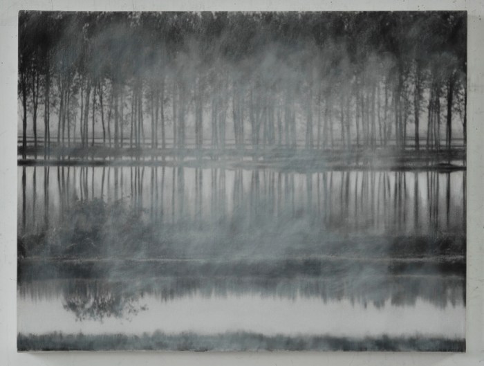 Nakis Panayotidis : Rizières, fusain et pastel sur toile rétroéclairée. Crédit photographique : Tornabuoni Art