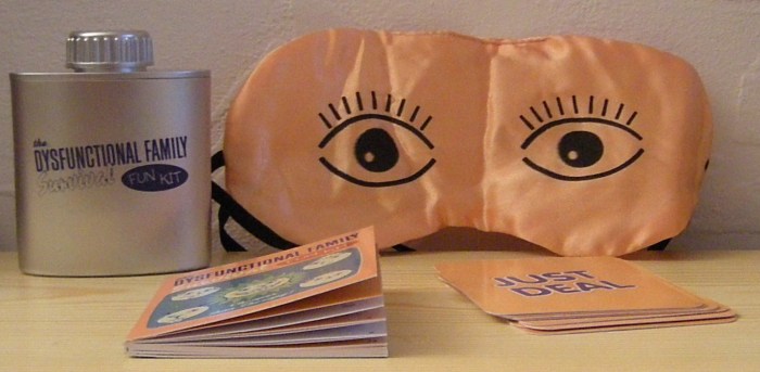 Pour survivre dans ce bourbier tout enguirlandé, vous avez fort heureusement amené votre Dysfunctional Family Survival Fun Kit.