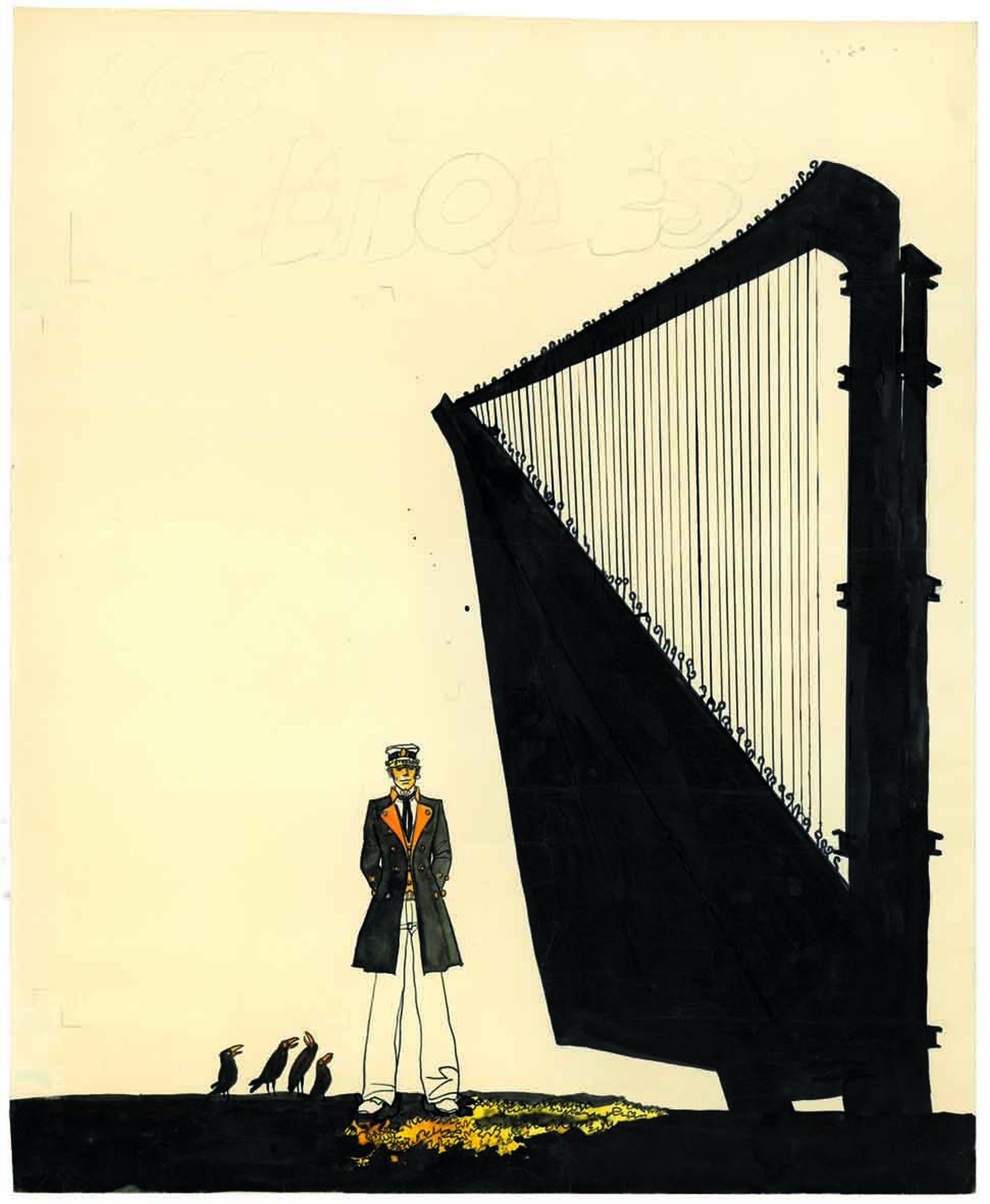 Hugo Pratt : Corto Maltese, Les Celtiques. Couverture (Casterman – 1980). Encre de Chine et de couleurs sur papier, 60 x 49 cm. Estimation : 220.000 – 240.000 euros. Copyright Cong/Casterman 2014. Crédit photo : Sotheby’s, Art digital studio. Ce dessin mythique, offert à l’époque par Hugo Pratt à son éditeur, n’a jamais été mis en vente.