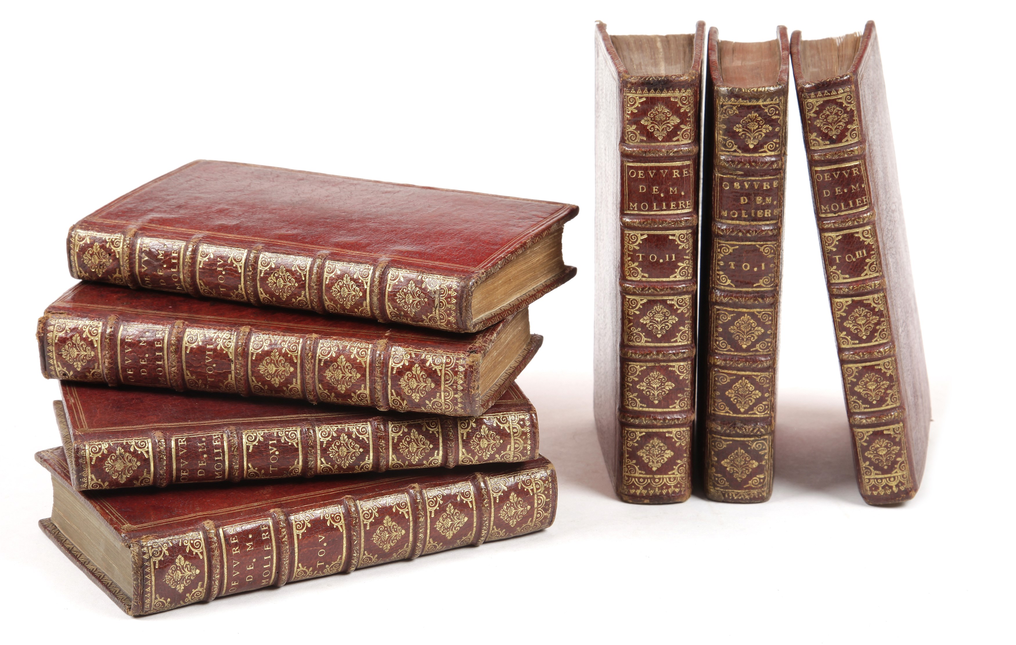 Les sept tomes sont conservés dans une reliure en maroquin rouge strictement d’époque