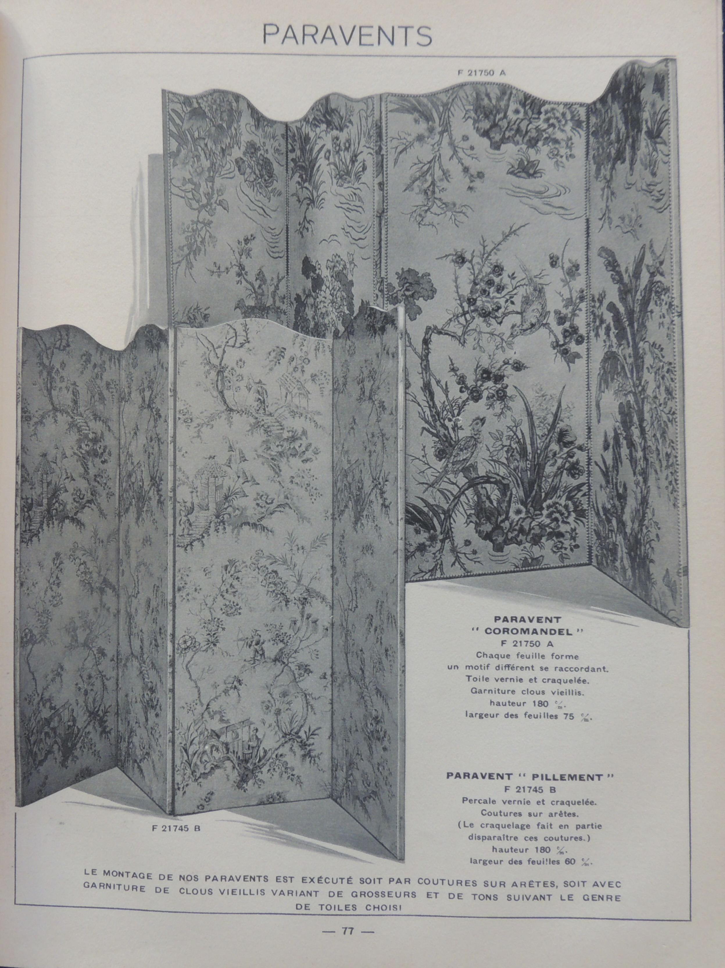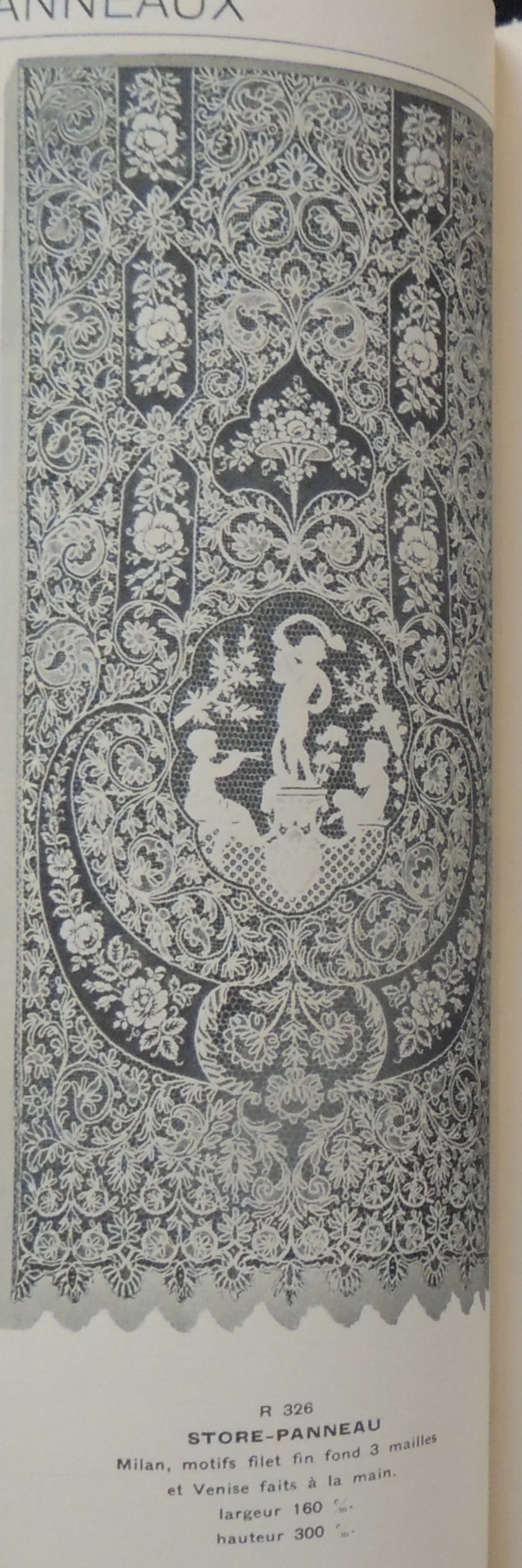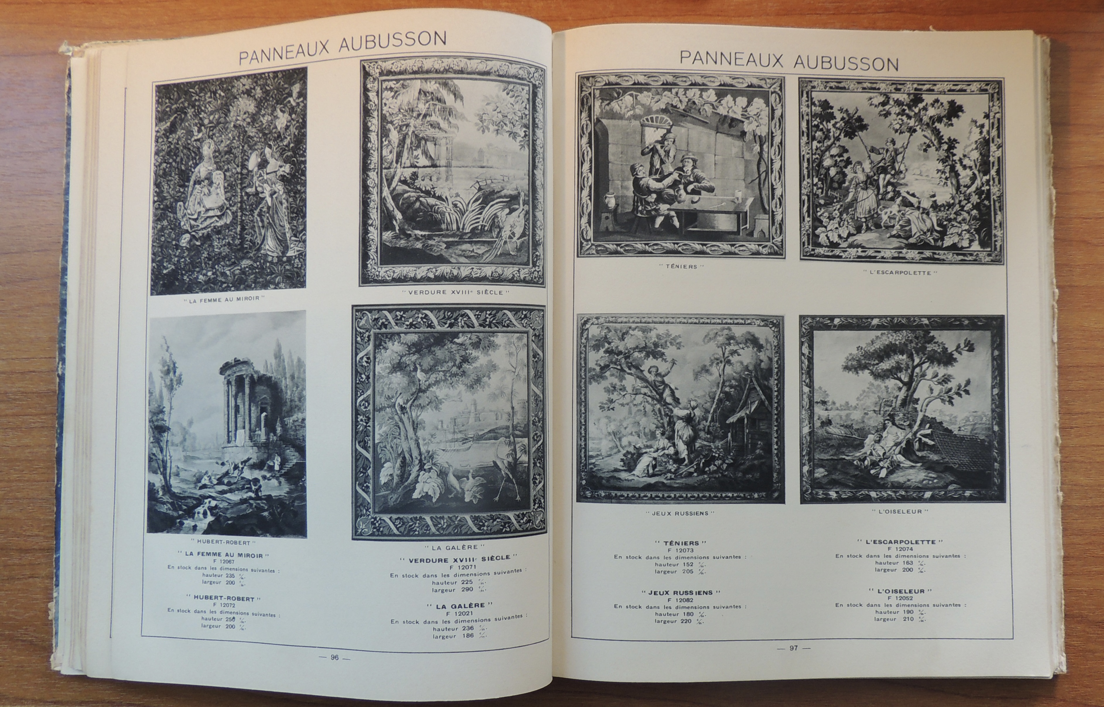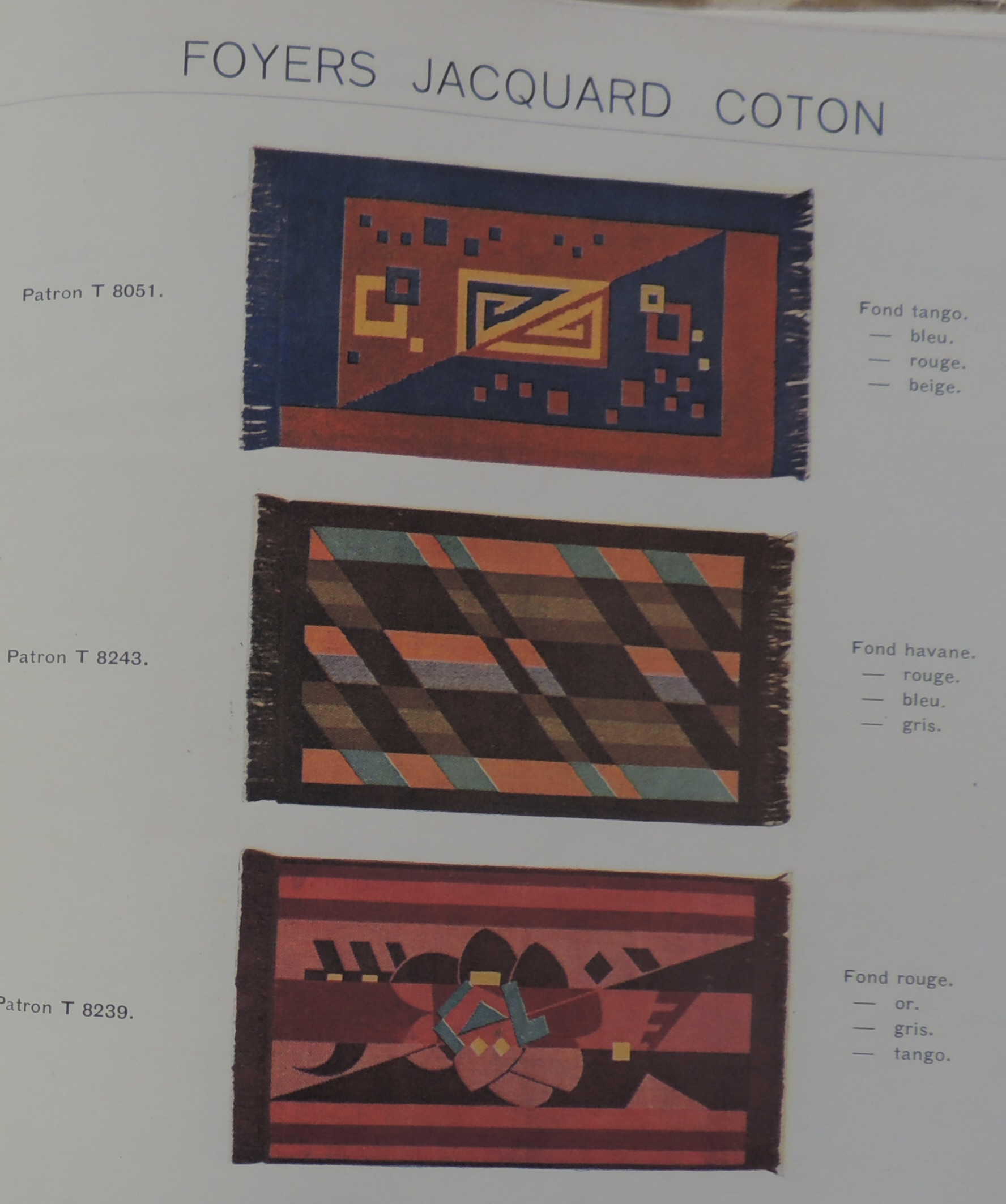 Dans un imposant catalogue commercial de productions textiles neuves daté autour de 1930, comptant des centaines de références, dont un échantillonnage représentatif des illustrations figure ci-après, les références rattachées à l’esthétique Art déco représentent environ 10 % de l’offre. La majorité des autres pièces relèvent de genres pouvant être considérés comme antérieurs aux années 1900 (dentelles, tapisseries, imprimés,..)